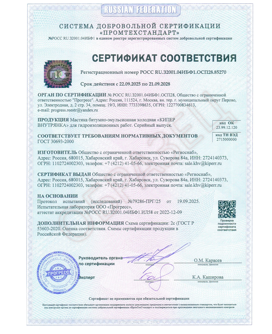Компания Кипер - ведущий приозводитель материалов для обмазочной гидроизоляции.
